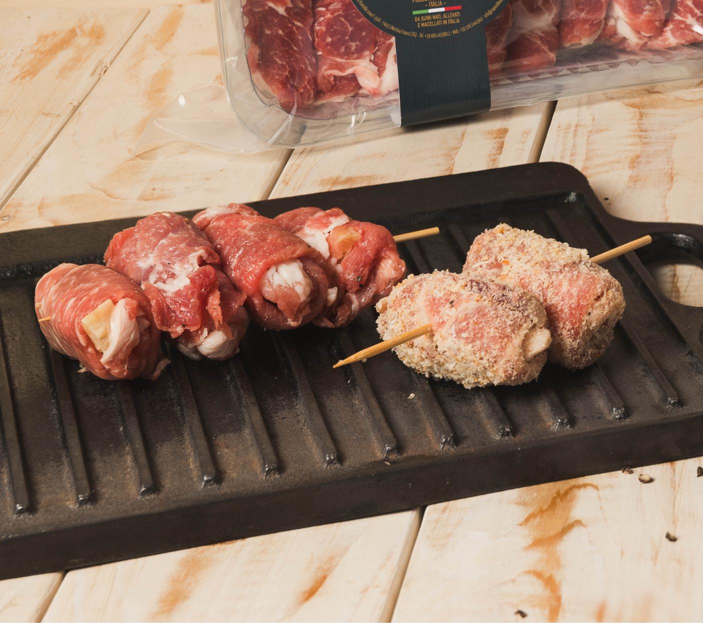 Sul nostro shop online Cervellera ti proponiamo, oltre le bombette tradizionali, delle varianti: bombetta impanata e bombetta con caciocavallo e rucola. Da preparare cotte sulla brace, in alternativa sulla griglia o in forno, o al sugo. Gusta il sapore autentico della bombetta pugliese, la regina dello street food in Valle d’Itria.